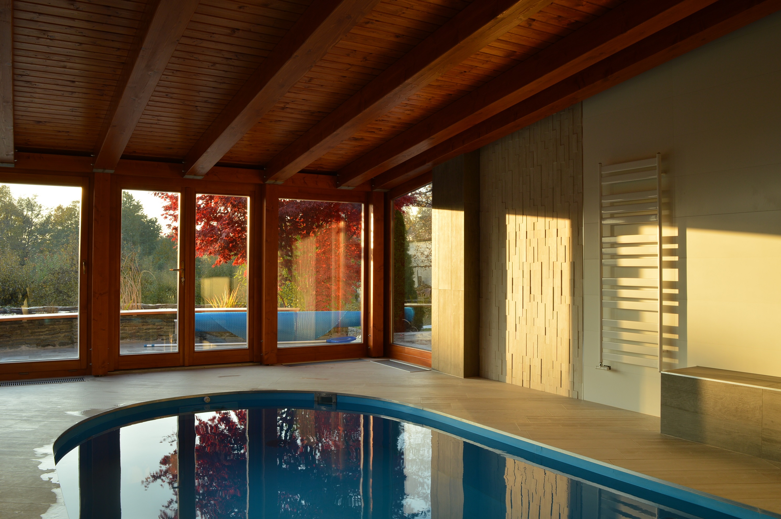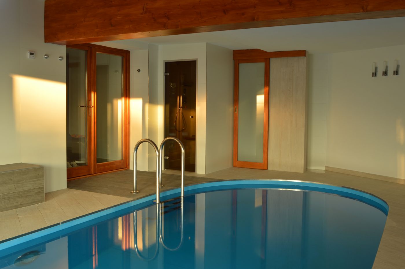 Rodinný dom sa nachádza v lokalite Košice-okolie. Jestvujúca bazénová hala pristavaná k rodinnému domu si vyžadovala stavebné úpravy, čím vznikla požiadavka aj na úpravu a zmenu jej interiéru a vybudovanie nového domáceho wellnwess prístupného priamo s interiéru rodinného domu. K zrekonštruovanému bazénu bola dobudovaná parná sauna, ktorá spĺňa aj funkciu sprchového kúta .