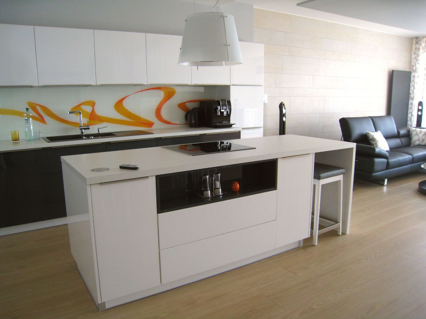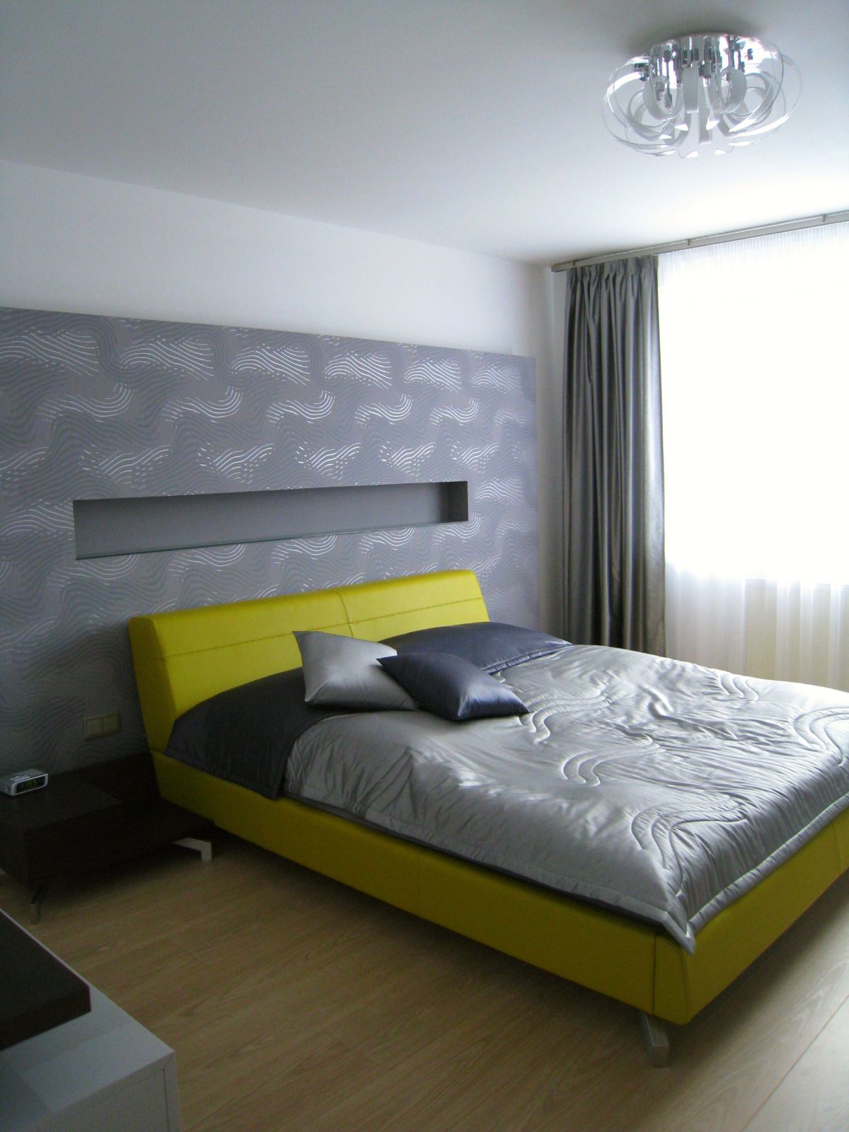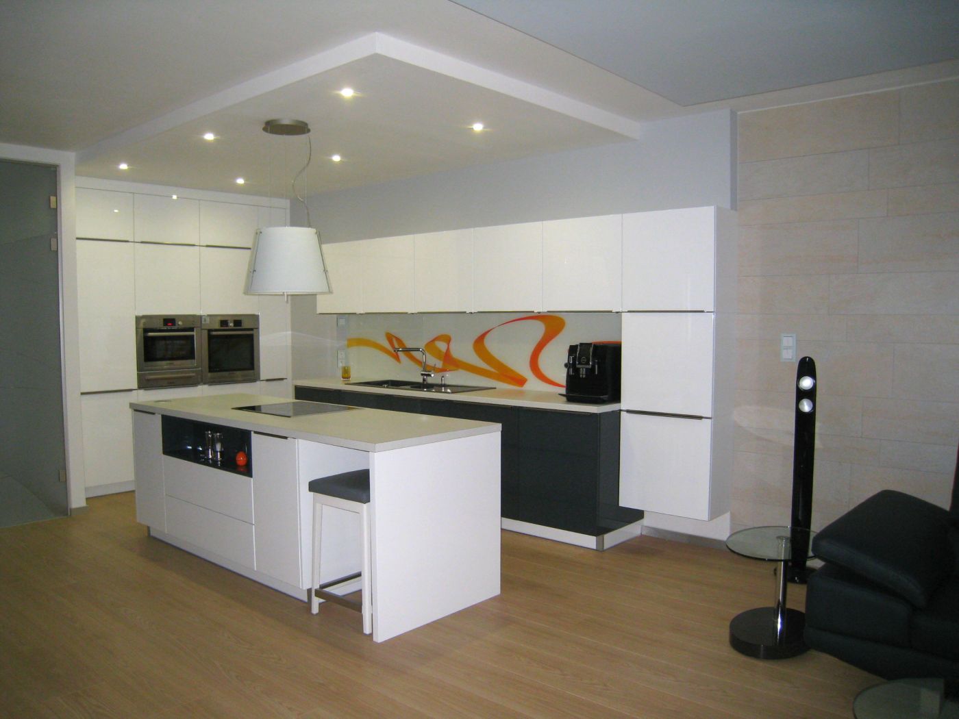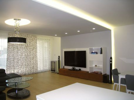 Nadštandardný byt v rezidenčnom objekte v centre Košíc poskytoval dostatočný priestor pre moderný vzdušný interiér. Byt je dispozične rozdelený na dennú a nočnú /súkromnú/ zónu. Denná časť je opticky rozdelená jednotlivými podhľadmi a materiálovým aj farebným odlíšením stien na priestory kuchyne, jedálne a obývacej izby. Rovnako aj rozmiestnenie svietidiel a jednotlivých okruhov dovoľuje vytvárať rôznu svetelnú atmosféru priestoru.