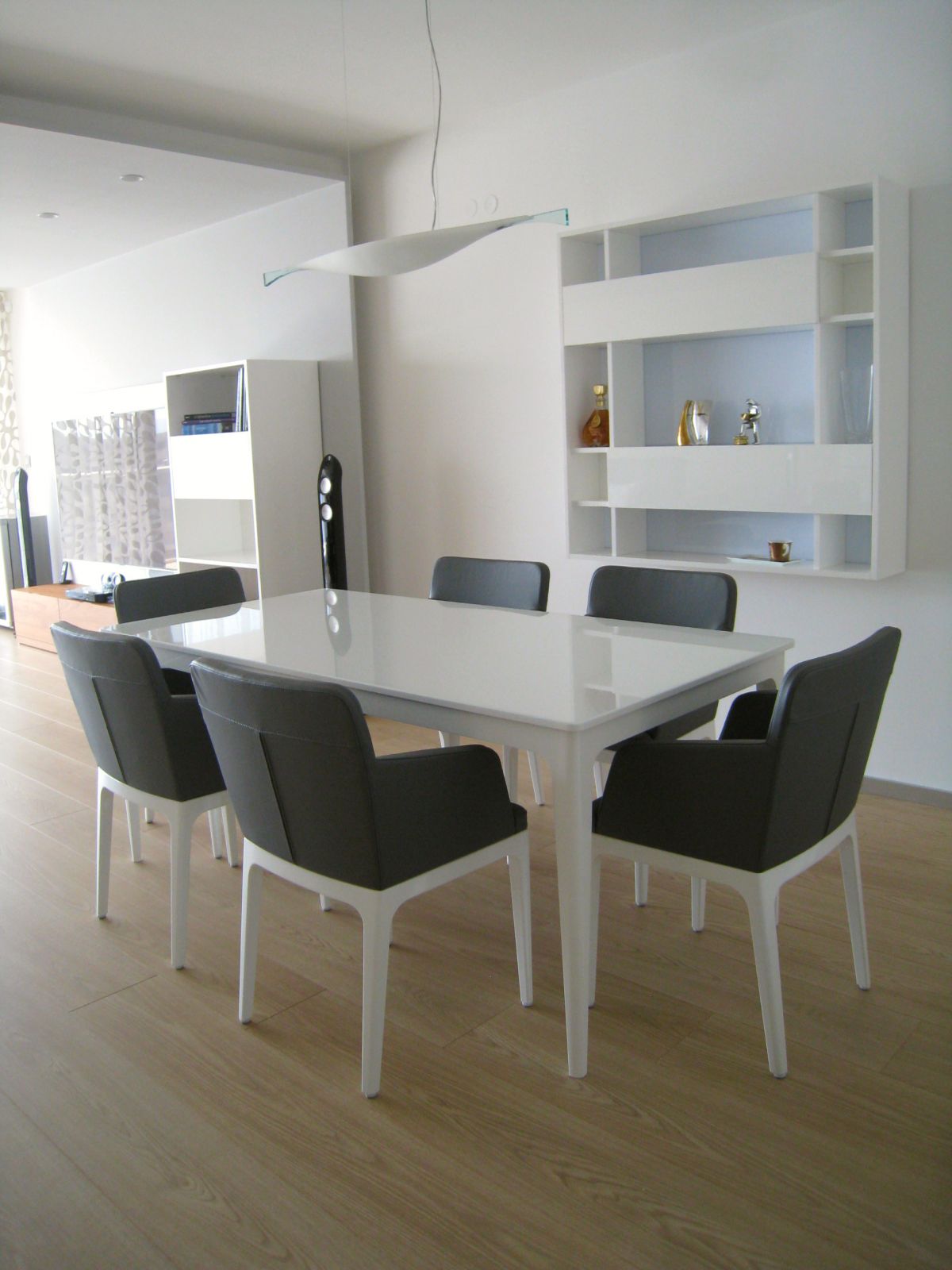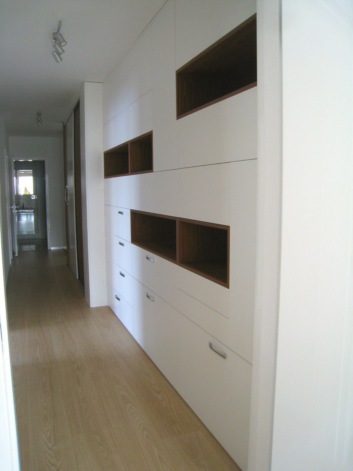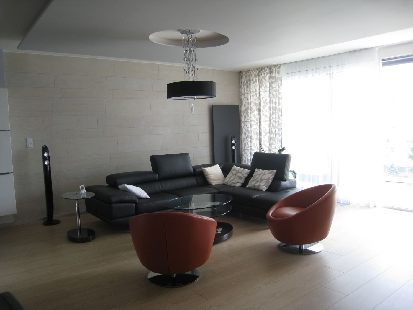 Nadštandardný byt v rezidenčnom objekte v centre Košíc poskytoval dostatočný priestor pre moderný vzdušný interiér. Byt je dispozične rozdelený na dennú a nočnú /súkromnú/ zónu. Denná časť je opticky rozdelená jednotlivými podhľadmi a materiálovým aj farebným odlíšením stien na priestory kuchyne, jedálne a obývacej izby. Rovnako aj rozmiestnenie svietidiel a jednotlivých okruhov dovoľuje vytvárať rôznu svetelnú atmosféru priestoru.