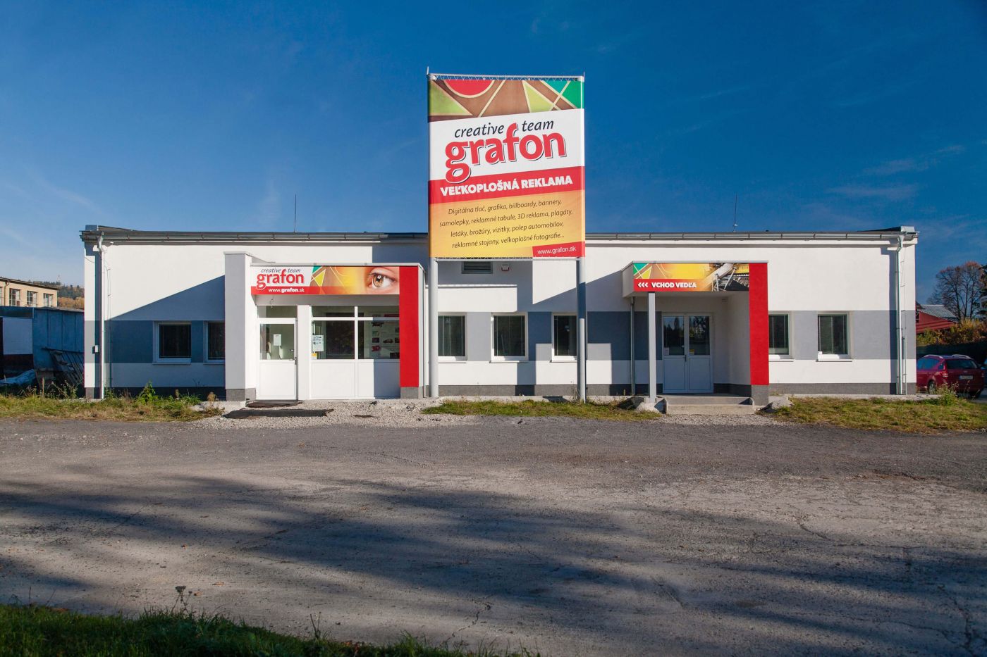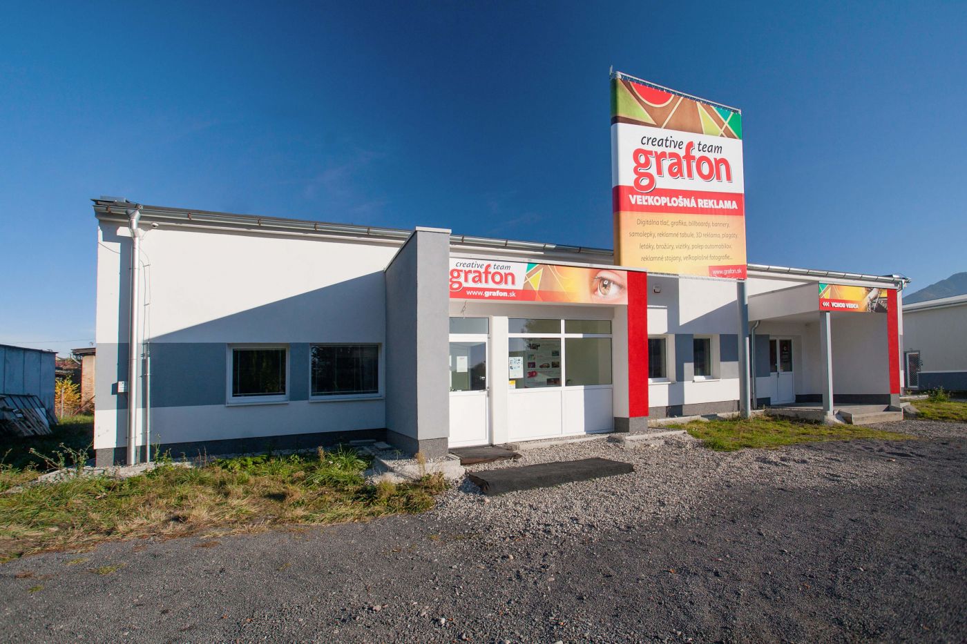 Firma Grafon sa zaoberá maloformátovou aj veľkoformátovou digitálnou tlačou a výrobou reklamných panelov a billboardov. Pre účely jej prevádzky bola navrhnutá prestavba a prístavba jestvujúcej haly, ktorá pôvodne slúžila ako sklad. Pôvodný objekt je po stavebných úpravách a zateplení funkčne rozdelený na administratívnu časť – kancelárske priestory a tlačiarenskú časť so skladovými priestormi. Pristavaná hala tvorí jeden veľký otvorený priestor - dielňu. Grafické panely s logom firmy na fasádnych prvkoch zdôrazňujú jednotlivé vstupy a tiež plnia funkciu reklamy viditeľnú už od samotného vstupu do mesta.