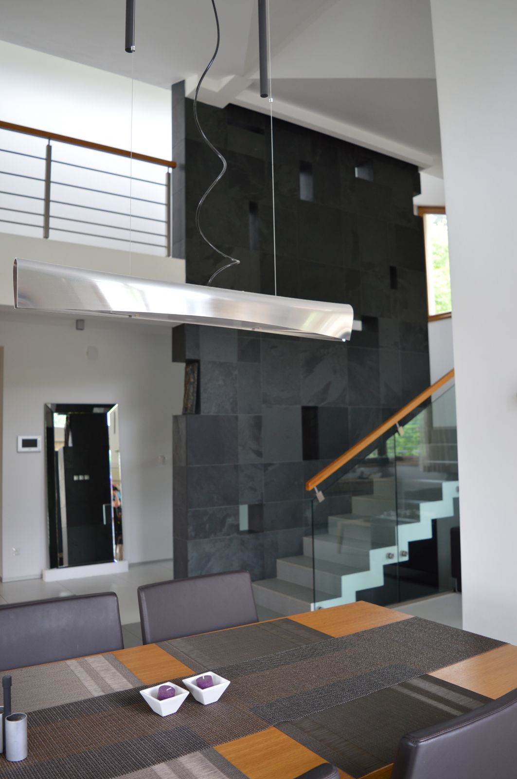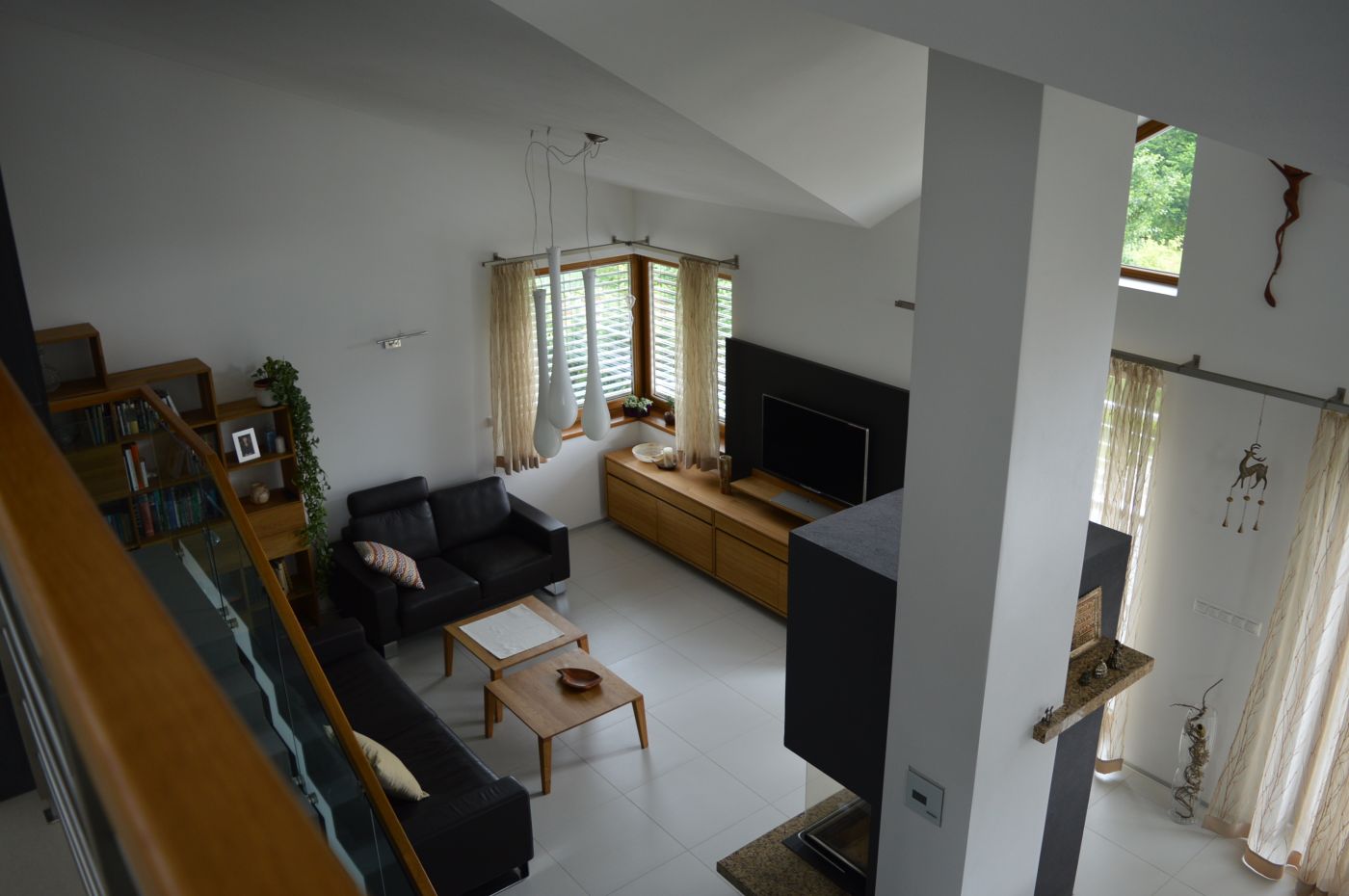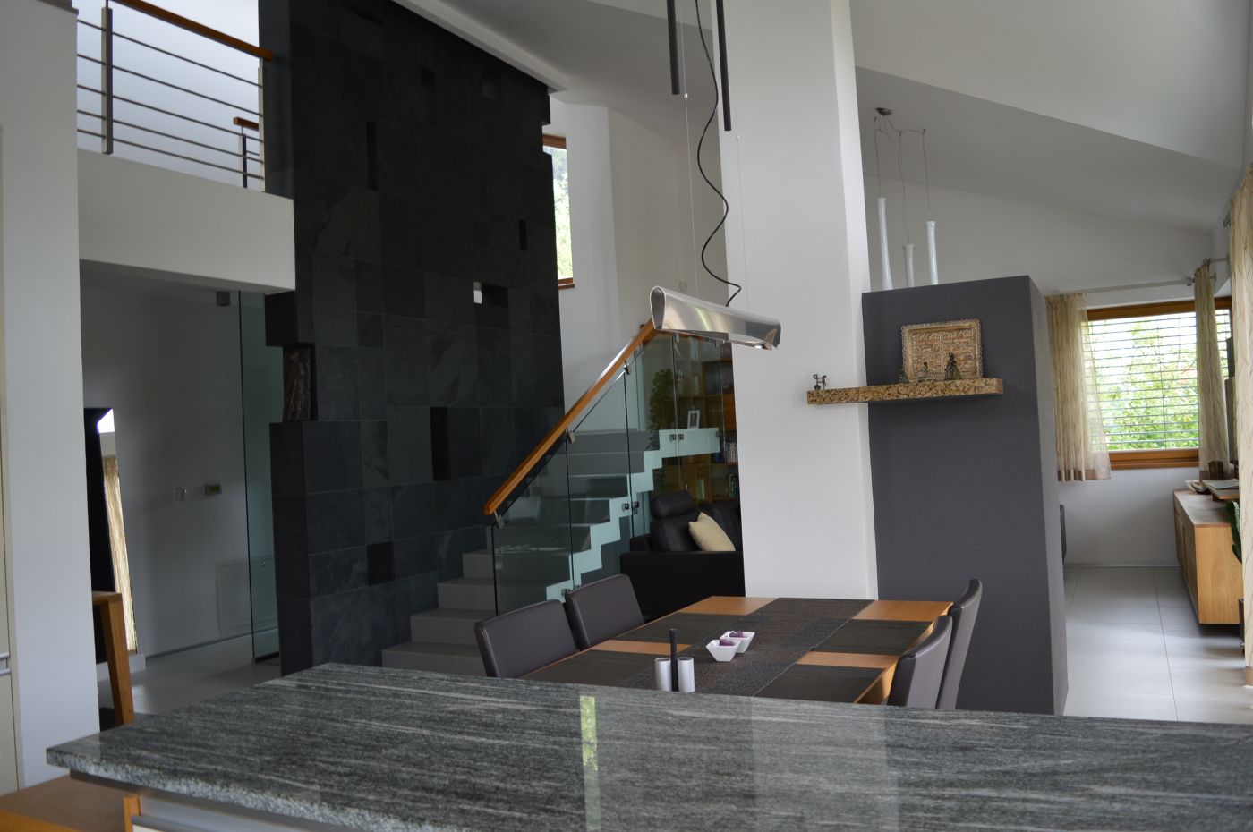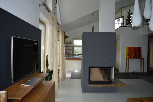 Návrh interiéru bol riešený počas výstavby rodinného domu, a tak počas jeho realizácie si už nevyžadoval stavebné úpravy. Vzťah majiteľov k prírode sa preniesol do celkového konceptu riešenia interiéru, kde prevládajú prírodné