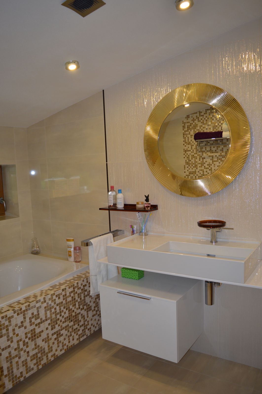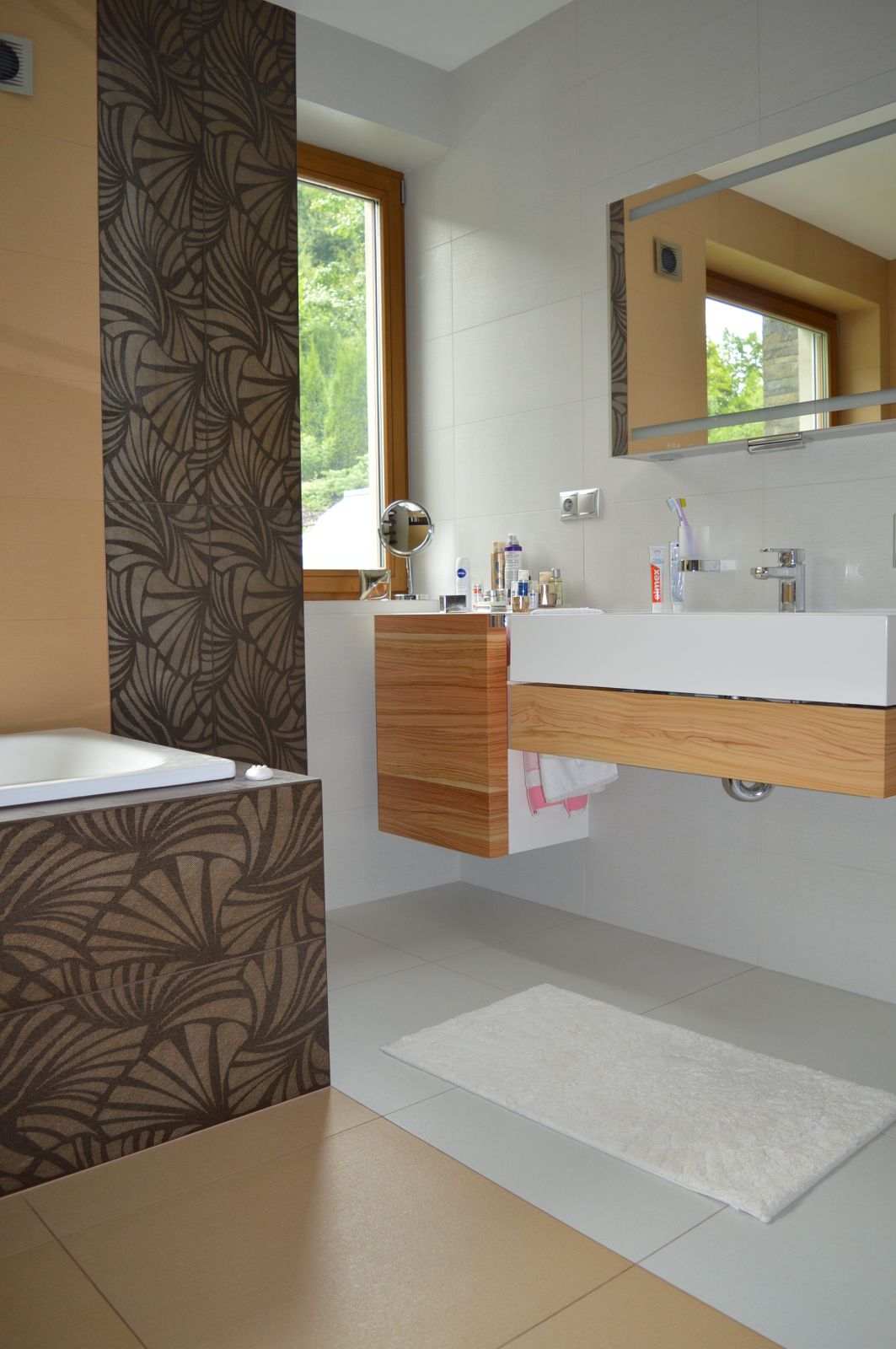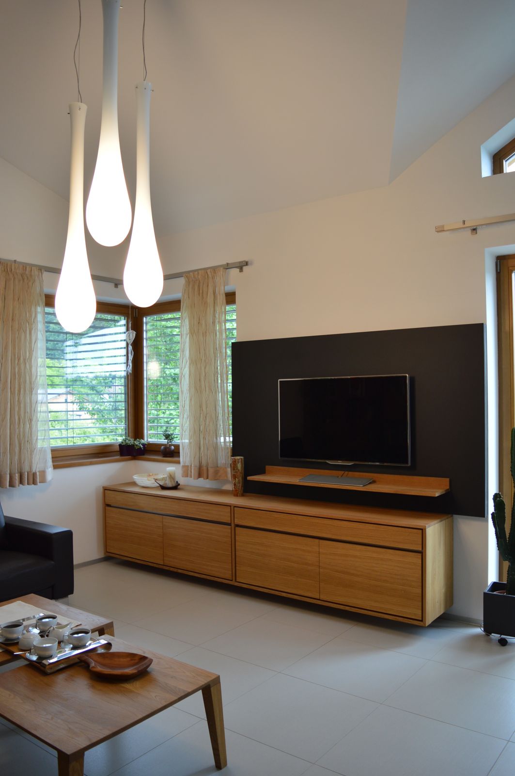Návrh interiéru bol riešený počas výstavby rodinného domu, a tak počas jeho realizácie si už nevyžadoval stavebné úpravy. Vzťah majiteľov k prírode sa preniesol do celkového konceptu riešenia interiéru, kde prevládajú prírodné